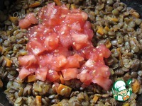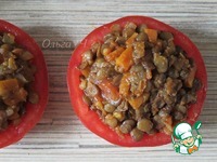 Половинки помидор нафаршировать чечевицей. |