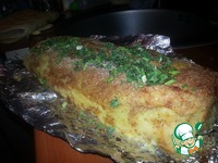 Форму для запекания присыпать панировочными сухарями (у меня формы нет - соорудила на скорую руку из фольги) |