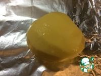 Картошку чистим, моем, даем чуть обсохнуть после мытья. Каждый клубень кладем на фольгу, натираем со всех сторон солью и 1 ч. ложкой растительного масла. |