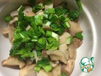 Готовим начинку. Маринованные крупные грибочки режем на кусочки поменьше, маленькие грибочки оставляем целыми. |