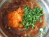 Добавить тертую морковь и мелко нарезанный зеленый лук, перемешать. |