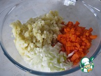 Очистить овощи, нарезать мелкими кубиками, положить в салатник. Добавить мелконарезанный лук. |