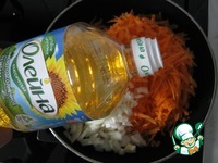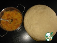 Пока подходит тесто, приготовим начинку. Морковь натереть на терке, лук мелко нарезать, отправить в сковороду, влить масло. Под закрытой крышкой на медленном огне довести до готовности. |
