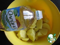 Картофель очистить, нарезать, влить растительное масло (5 ст. л.). |