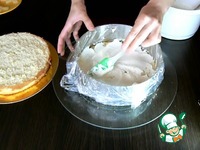 Собираем торт любым способом (я в кольце). Сначала корж, потом пропитка (сок с ананасов с сахаром), взбитые сливки, ананасы |