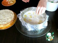 Этапы сборки торта на основе взбитых сливок и консервированных ананасов