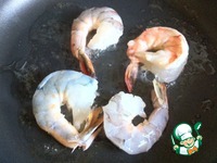Креветки очистить, удалить вену и обжарить по 1 минуте с каждой стороны. |