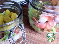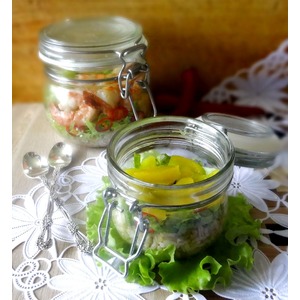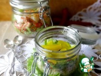 Описание: Сейчас очень модно подавать всевозможные блюда, включая десерты, в баночках. Особенно стильно смотрятся яркие "слоеные" яства. Кроме того, это очень удобный и практичный вариант рабочего перекуса. Можно приготовить два варианта салата на одной основе и подать их в баночках.