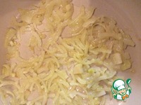 Выложить лук и обжаривать на минимальном огне до прозрачности и достижения легкого золотистого оттенка. |