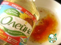Масло «Олейна» разогреть –но не сильно – всыпать чили и паприку, размешать и залить салат. Сбрызнуть соевым соусом и перемешать. |