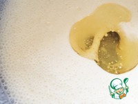 Теперь вливаем подсолнечное масло. Снова перемешиваем. Иногда я добавляю растопленный маргарин. Можно и сливочное масло - тогда тесто получается более сдобное. Похоже на вергуны на кефире. |