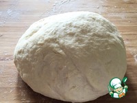 Выкладываем на стол и замешиваем мягкое тесто. На этом фото видно, что мне здесь мой двухлетний малыш помогает замешивать... Подсыпайте муку на стол. Нужно, чтобы тесто не липло к рукам. |