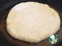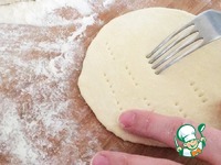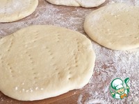 Теперь формируем лепешки. Раскатываем тесто толщиной 5-7мм. Обязательно прокалываем тесто в нескольких местах (чтобы не пузырилось на сковороде). Я делаю это вилкой. |