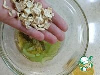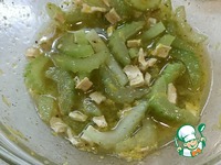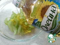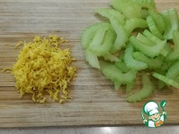 Выложить в миску цедру лимона и сельдерей, добавить пару столовых ложек подсолнечного масла. |