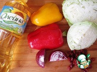 Подготовим овощи для салата. Я взяла 1/2 красного болгарского перца и 1/2 жёлтого. |