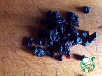 Чернослив помыть, обсушить, порезать на четыре части. Если чернослив слишком сухой, залить его кипятком на 10-15 минут. |