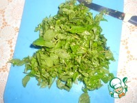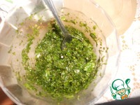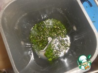 В чашу хлебопечки влить воду, добавить измельченную сныть (получилось 4-5 ст. л. сныти). |