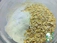 В миске смешать муку, разрыхлитель, соль и овсяные хлопья. |
