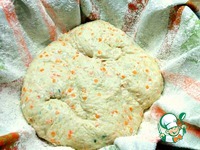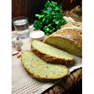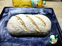 Придать тесту форму батона и уложить на противень припорошенный мукой, или выложить в форму, сделать диагональные надрезы. Выпекать в духовке 45 минут при t 220C. Можно подавать теплым. |