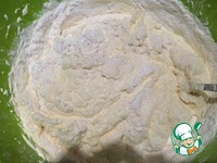 Частями ввести муку с сухими компонентами и аккуратно перемешать тесто. |