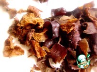 Сухие грибы замочить на полчаса, затем прогреть в микро минуты две. Остудить и нарезать кусочками. Если у вас грибы наши лесные -замочите и отварите их, как обычно. |