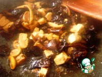 Разогреть в воке мало «Олейна» и обжарить сушеные грибы пару минут при постоянном помешивании. |