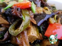 Свежие или замороженные грибы нарезать ломтиками, опята разобрать поштучно -китайские растут пучком. Тофу нарезать кубиками. |