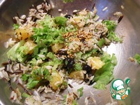 Фенхель мелко нашинковать, посолить, поперчить, обжарить на растительном масле ТМ "Олейна" (2 ст. л.) до золотистого цвета 3–4 минуты. Остудить. |