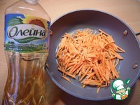 Морковь нарезать соломкой, добавить соевый соус, обжарить на растительном масле ТМ "Олейна" 2–3 минуты. |