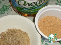 Из грецких орехов сделать крошку и соединить её с панировочными сухарями. |