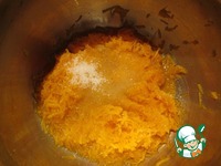 Тыкву потереть на мелкой терке, залить водой, добавить две столовых ложки сахара и поставить на медленный огонь. Тушить 5-7 минут. |