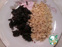 Фундук подсушить на сковороде до тех пор, пока не полопается темная оболочка, и пошелушить руками. Измельчить в блендере или порубить ножом. Чернослив промыть, обсушить и мелко порезать. |