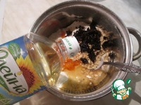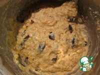 К муке добавить тыквенное пюре, чернослив, орехи и растительное масло. |