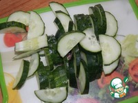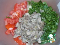 Смешать огурец, помидор, петрушку, грибы с луком. Посолить и поперчить по вкусу. |