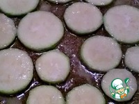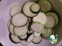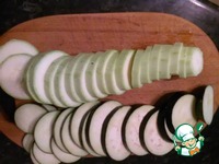 Режем баклажан и кабачок кругами, толщиной примерно 5 мм. |
