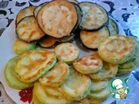 Когда обжарили кабачок, точно так же обжариваем и баклажан. Вот что получилось |