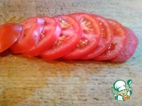 Нарезаем помидор так же кружочками, тоже толщиной 5 мм. |