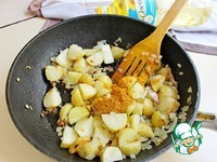 В сковороде на растительном масле "Олейна" обжарить 2 мин. мелко нарезанный лук и чеснок. |
