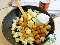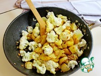 Цветную капусту разобрать на соцветия, добавить к овощам и жарить вместе 5 мин. |