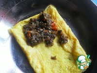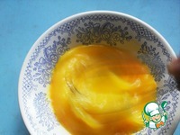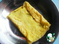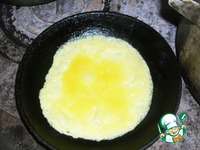 Крахмал развести в 2 ст. л. воды и отставить на 5 минут для набухания. Потом взбить венчиком яйца с крахмалом, солью и 1 ст. л. масла. |