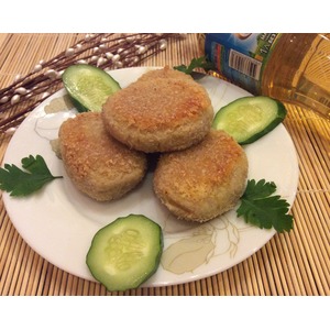 На сковороду влить 1 ст. ложку растительного масла и обжаривать котлетки до золотистого цвета с обеих сторон. Подавать со свежим огурчиком. |
