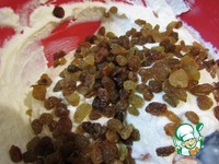 И только после этого добавить подготовленный изюм. Массу хорошо перемешать. |