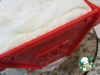 Соберите форму для пасхи. Разложите в ней влажную марлю, которую необходимо прижать к стенкам формы. |