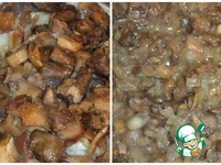 Готовим начинку для пирожков. Нарезаем лук и грибы. |