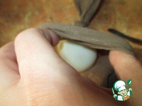 Нам понадобятся колготки телесного цвета. Их надо будет порезать на запчасти)))на равные отрезки. сантиметров по 10. С одного конца завязываем узел. Насыпаем резанную шелуху. Шелухи не жалейте) |