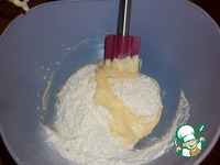 Всыпать просеянную с разрыхлителем муку. Смешать ложкой. |