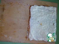Горячие коржи смазываем джемом или вареньем. Обрезаем неровные края. Аккуратно. Коржи очень хрупкие. |