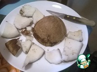 Чистим и режем кокос. Если кокосовое молочко сладкое - им можно частично заменить обычное. |