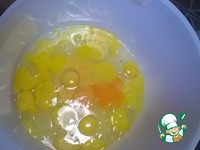 Разбиваем яйца в миску, в которой будем замешивать тесто (На фото - 16 яиц, но если вы ставите тесто на 1 кг муки, то яиц всего 4). |