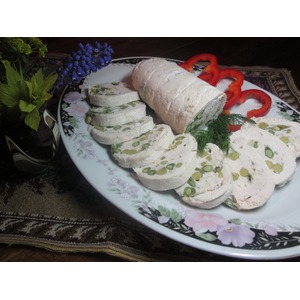 Описание: Очень нежная закуска. Украсит праздники и будни. Ломтики остывшего галантина можно обжарить до золотистой корочки.
